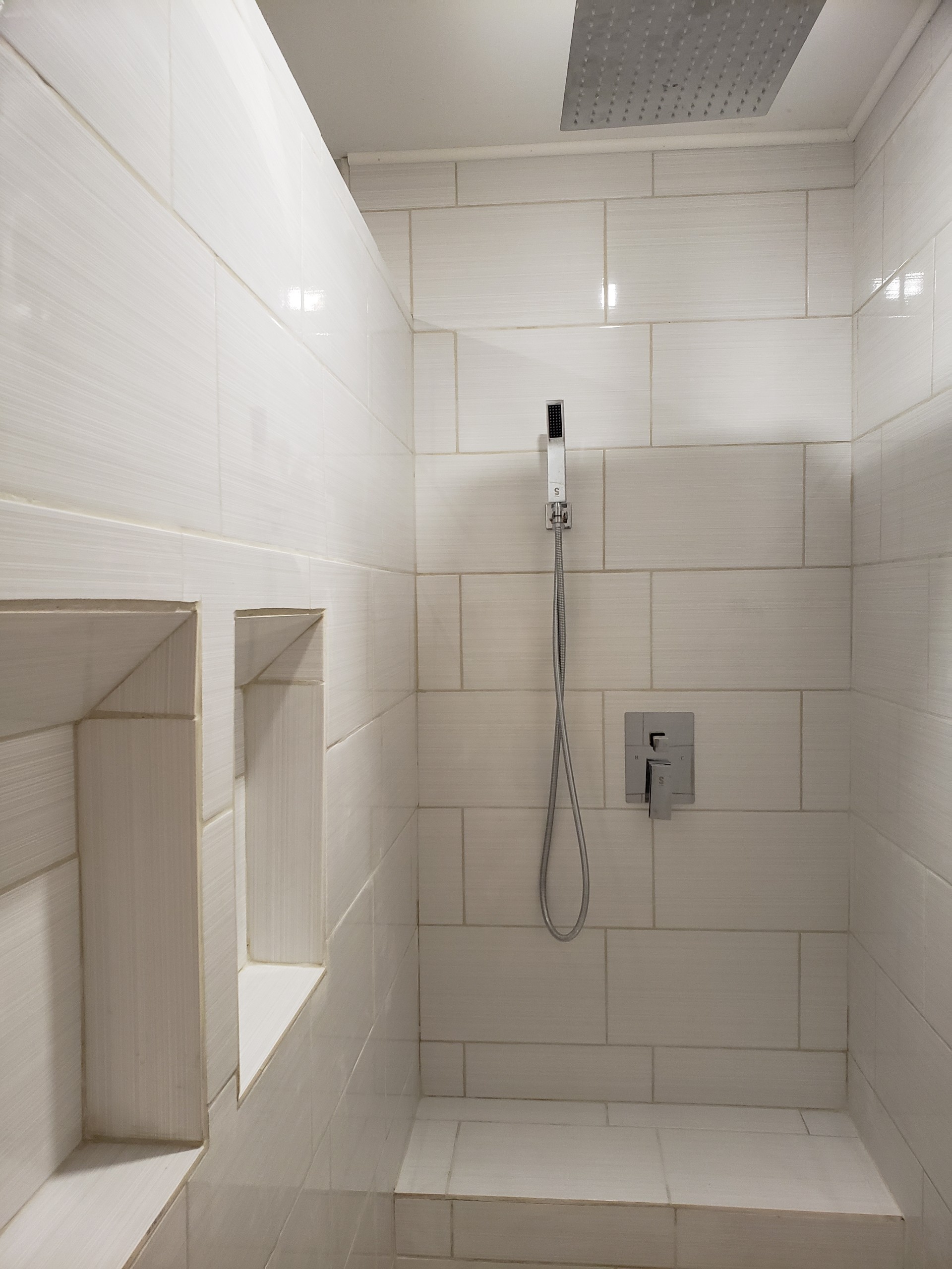 - Primary bath with his/hers sink & overhead fully-tiled rain shower